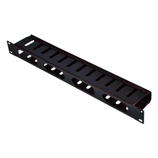 Кабельный органайзер, тип пенал, металлический, чёрный 1U. Крышка панели закрывает кроссовые шнуры, улучшая тем самым эстетику распределительного пункта. Крышка крепится на защёлки, нет необходимости применять дополнительные монтажные инструменты. Стандарт 19 дюймов. Облегчает конфигурирование и внесение изменений в системе.